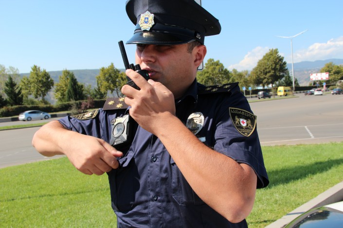 Грузинские полицейские носят темно-синюю форму.