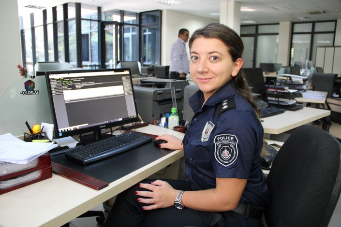 В Туркменистане у полицейских сине-зеленая форма с белыми рубашками.