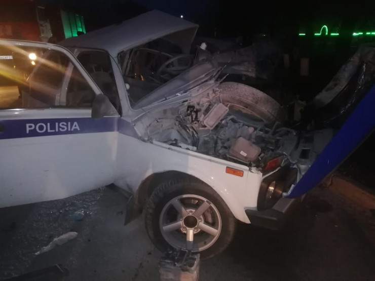 Он наехал на патрульное авто. Судя по фото, от него осталась лишь груда металла.