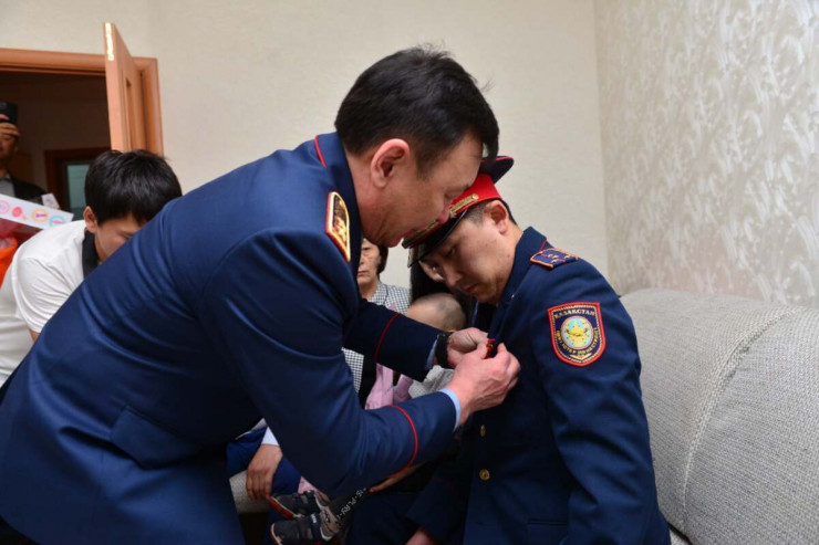 Награду полицейскому вручил первый заместитель министра внутренних дел Марат Кожаев.