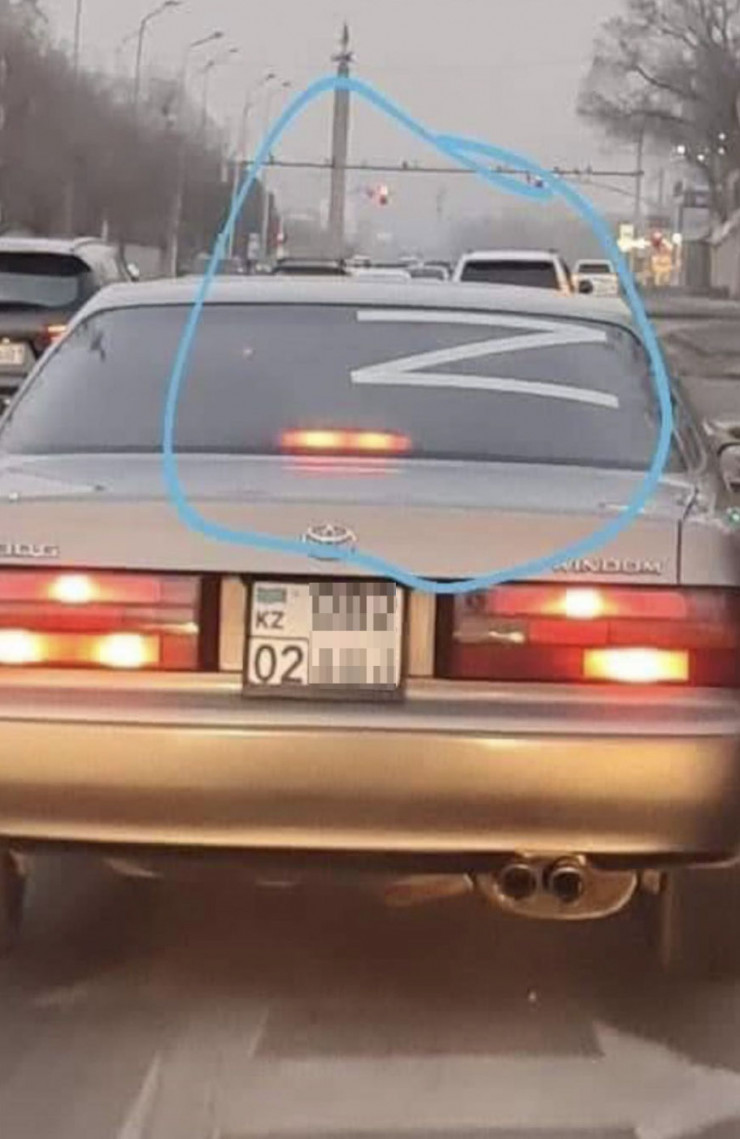 Полиция Алматы начала проверку легкового автомобиля, на стекле которого размещена буква Z. Об этом сообщил заместитель начальника городского Департамента полиции Рустам Абдрахманов, передает корреспондент Tengrinews.kz.
