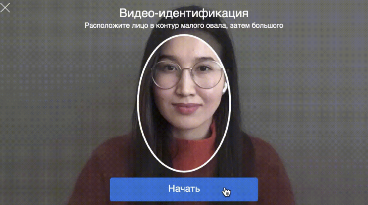 После добавления селфи нажмите кнопку "Продолжить" для прохождения видеоидентификации. Вам необходимо будет выполнить ряд рекомендаций по расположению и движению лица.