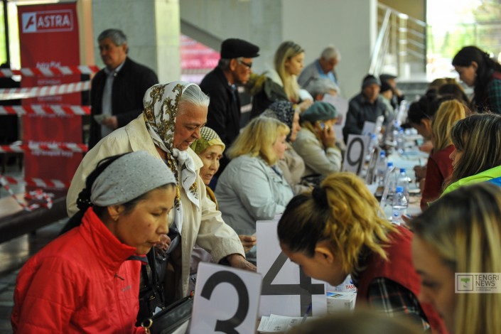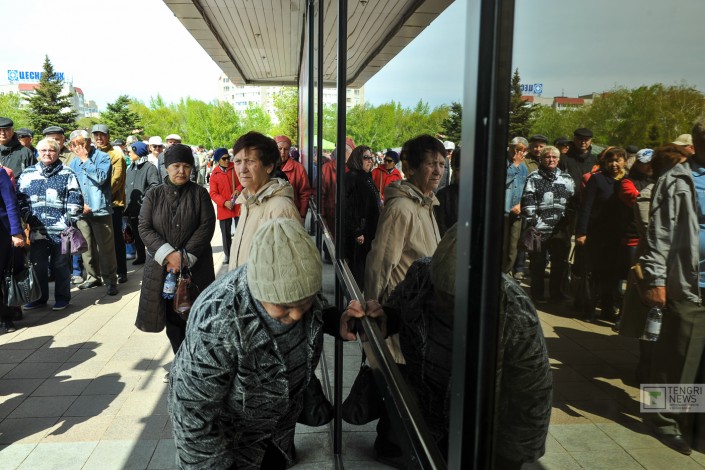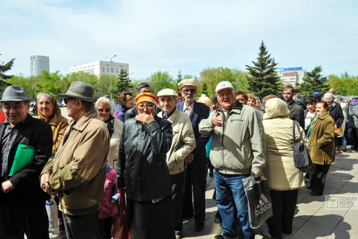 "Последний раз мы так стояли за колбасой в СССР": Как пенсионеры Астаны получают транспортные карты Фото Турар Казангапов©