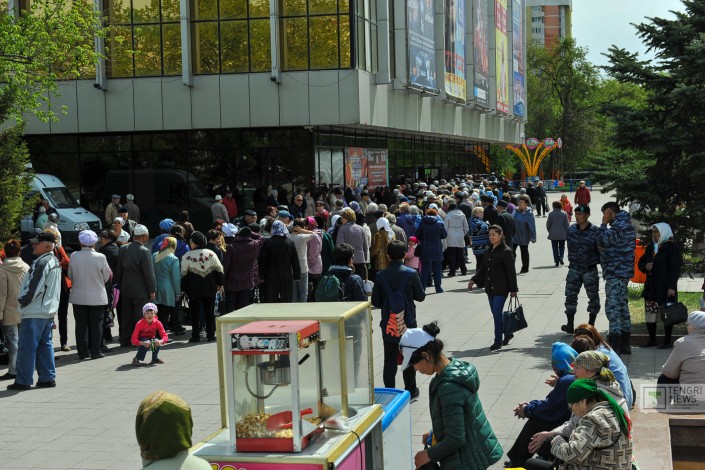 Время обеда, а во дворец "Жастар" очередь тянется чуть ли не от самой дороги.