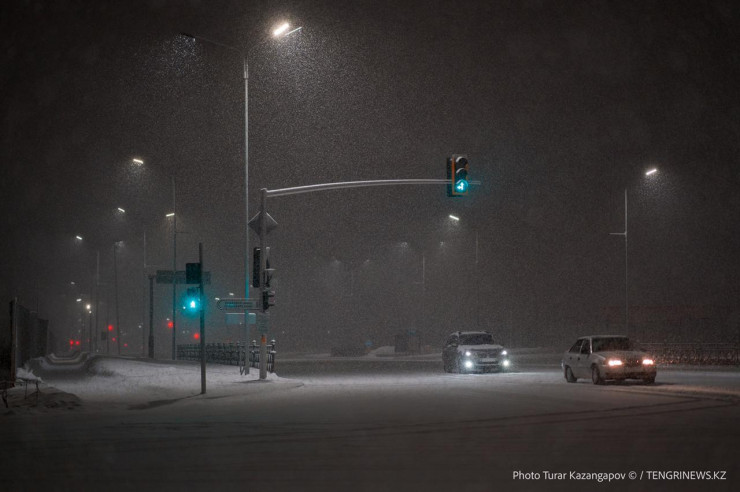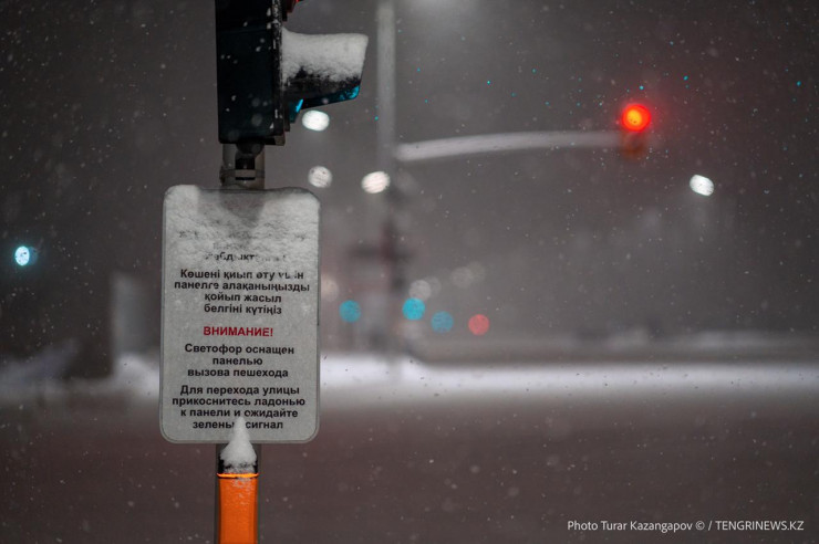 В столице Казахстана ночью выпал снег.