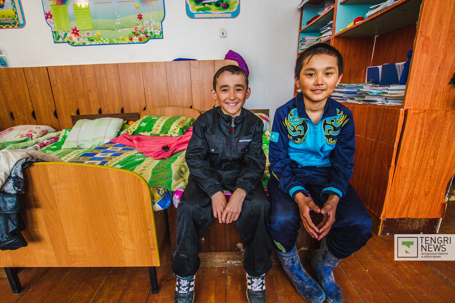 Сельский акимат предоставил им постельное белье, матрацы, одеяла. Кормит их, по словам директора школы, столовая совхоза.