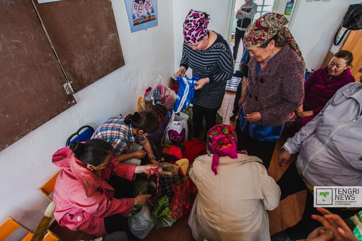 Жителей села Жанажол, которое пострадало больше всего, разместили в средней школе №5 поселка Акмол. В поселке сейчас нет света. Это соседнее село, из которого были эвакуированы 350 человек, 29 из них с 18 апреля находятся в школе.