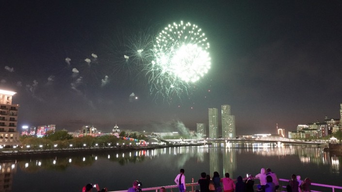 Салют можно было посмотреть с двух точек: набережная реки Есиль и Триатлон-парк.