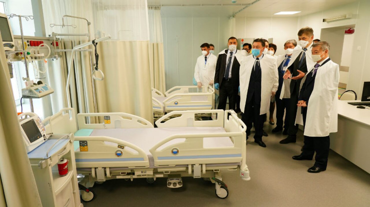 Аскар Мамин посетил областную детскую больницу, где ознакомился с работой реанимационных и операционных блоков, а также научным проектом по выделению иммунной плазмы для лечения COVID-19.