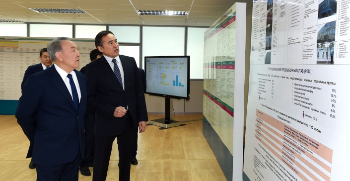 Президент Казахстана Нурсултан Назарбаев посетил республиканский предвыборный штаб партии "Нур Отан", передает корреспондент Tengrinews.kz со ссылкой на Акорду.