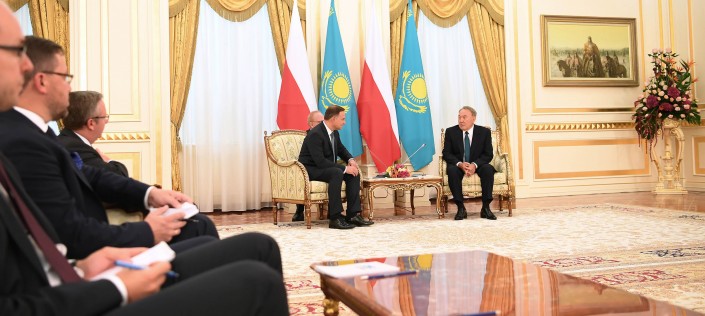 Президент Польши Анджей Дуда прибыл в Казахстан с государственным визитом. Нурсултан Назарбаев принял своего коллегу в столичной резиденции. Президент Польши поблагодарил Назарбаева за приглашение посетить Казахстан. Он отметил, что в Астане он примет участие в казахстанско-польском бизнес-форуме, посетит выставку EXPO-2017, а также проведет встречу с премьер-министром страны Бакытжаном Сагинтаевым.