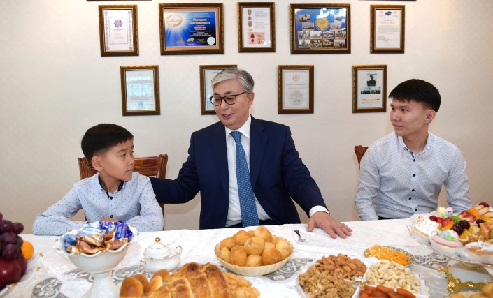 Президент пришел домой к семье Халық қаһарманы Газиза Байтасова Фото:akorda.kz