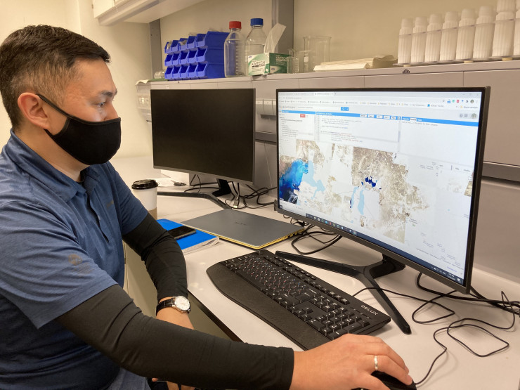 Еще один способ обнаружить большие колонии токсичных водорослей - космические снимки. На помощь ученым пришел инженер фотограмметрической обработки снимков "Қазақстан Ғарыш Сапары" Канат Самарханов. Он использует бесплатные снимки геологической службы NASA, обрабатывает их и выявляет наличие водорослей-убийц в водоемах.