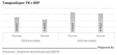 При этом, как отмечают аналитики, объемы торговли РК с КНР замедляются. За 11 месяцев 2016 года объем товарооборота между странами составил всего 7,1 миллиарда долларов. Это на 27 процентов меньше объема торговли годом ранее.