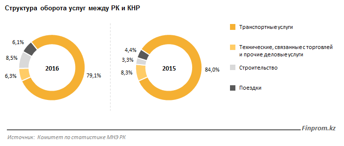 Товарооборот с Китаем составил 16 процентов от общего объема внешней торговли Казахстана в 2016 году. Оборот услуг - 33 процента объема.