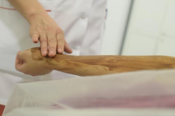 И женщины, и мужчины сюда чаще приходят за молодостью, причем в самом широком понимании, где быть молодым прежде всего значит быть здоровым. Потому обертывание направлено на поддержание здоровья тела. Клиент проходит несколько этапов процедуры: сначала ему необходимо хорошенько выпариться в бане, чтобы подготовить кожу, после чего врач приступает к ее очистке скрабом и заворачивает клиента на специальной водяной кушетке, которая нагревается до определенной температуры и заставляет организм потеть, выпуская токсины и шлаки наружу. После процедура повторяется в той же последовательности, но вместо скраба наносится специальная смесь для обертывания: можно выбрать по вкусу водоросли или шоколад, конечно, несъедобный.