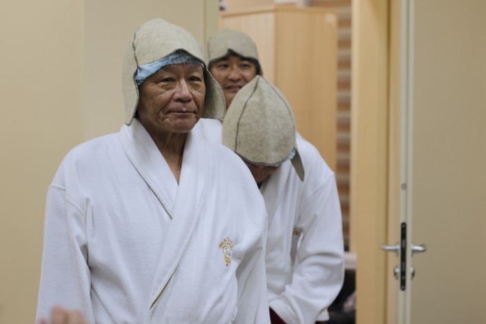 Есть в Городском курорте и полная противоположность бане, где зима длится круглый год, - криосауна: температура в ней достигает -110 градусов по Цельсию. Все в лечебных целях. Криосауна - это кабина, заполненная смесью азота и воздуха, которые охлаждают поверхность тела пациента в течение 2 минут. Резкая смена температуры, от теплой комнатной до экстремальной минусовой, по словам экспертов, благоприятно влияет на обновление клеток и всех системы организма. "Холодная баня" особенно рекомендуется при псориазе, нейродермите, угревой сыпи, лишнем весе, слабом иммунитете и болезнях костей и повреждениях суставов. Среди клиентов криосауны немало спортсменов, а однажды в ней побывали и дипломаты из Японии.