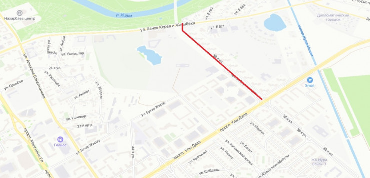 Сообщается, что в столице частично завершилось строительство и открыт проезд на участке улицы (№38) от проспекта Улы Дала до улицы Керей, Жәнібек хандар.