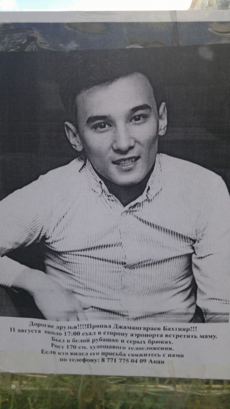 Отметим, 10 дней назад в Астане на остановочных павильонах появились объявления о пропаже молодого человека. В информации указывалось, что 11 августа Бахтияр Джамангараев выехал в сторону столичного аэропорта, чтобы встретить маму, но так и не вернулся домой. На следующий же день родные пропавшего обратились в полицию.