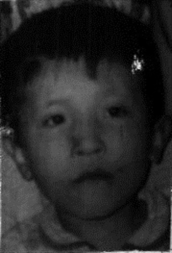 Семкин Валерий Владимирович, 01.03.1992. Пропал в городе Кентау в 1995 году. Орган, ведущий розыск - ГОВД города Кентау ЮКО. Лицо на фотографии различить не удалось. В этом году его возраст составляет 26 лет.