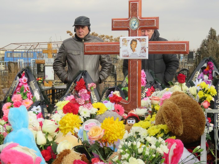 Похоронная процессия началась в областном морге, где было установлен гроб с телом шестилетней Вики Мининой. Никто из пришедших не смог сдержать слез. Горожане молча прощались с Викой. После прощания прошло отпевание в церкви. Девочку похоронили на христианском кладбище в Актау.