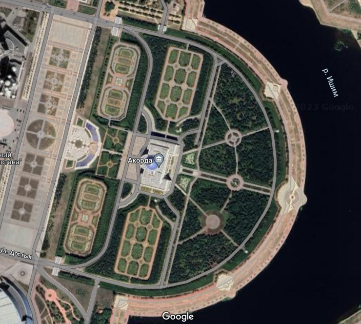 Резиденция Акорда расположена на левом берегу реки Ишим в Астане, в начале бульвара Нуржол, в 300 метрах от монумента "Байтерек".