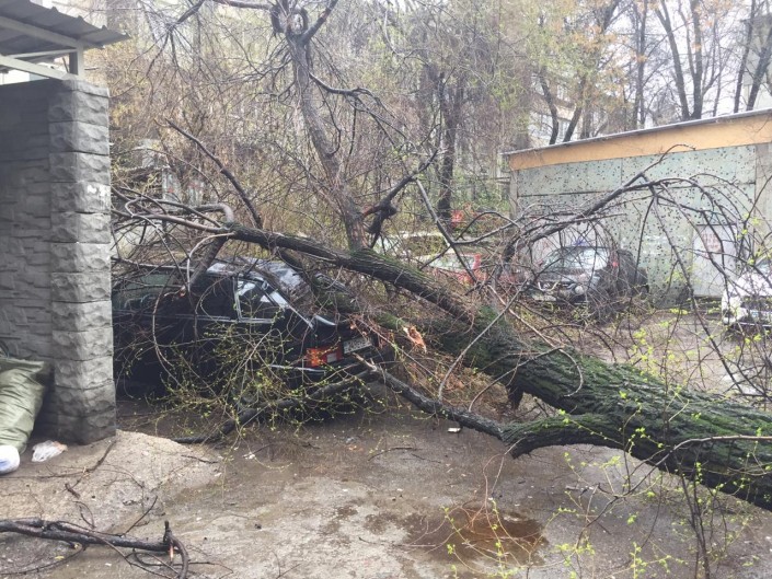 В нескольких частях города сообщается об упавших деревьях. По словам жителей города, сильного ветра в Алматы не было.
