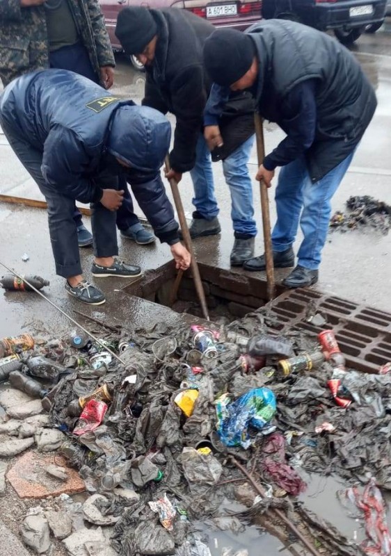 По словам горожан, дождь не был сильным, но шел со вчерашнего вечера без остановки, из-за чего скопилось много воды. Очевидцы сообщают о переполненных арыках и длинных пробках на дорогах.