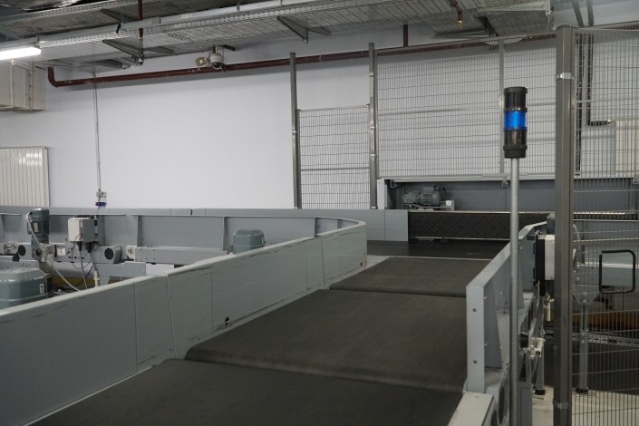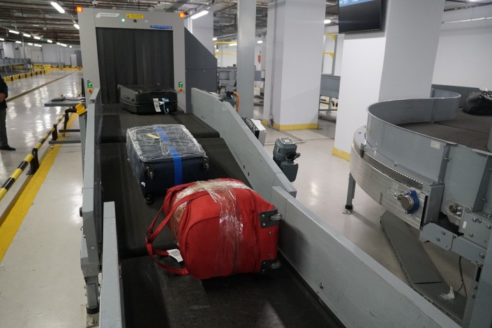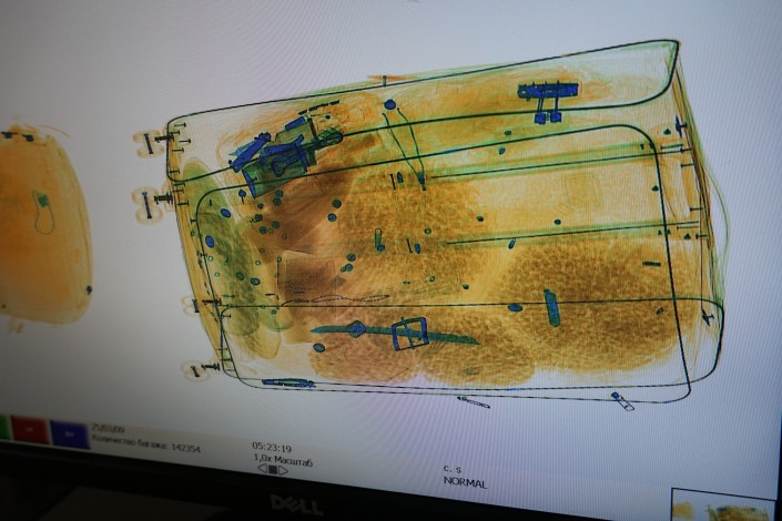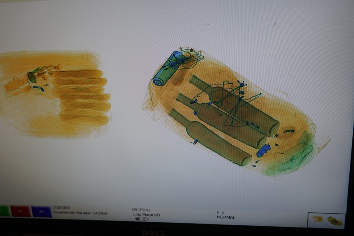 Багаж вылетающих пассажиров досматривается еще и службой авиационной безопасности аэропорта. Проходящий по ленте багаж с опасным содержимым распознается в автоматическом режиме. Система реагирует на подозрительный багаж: тут же загорается синяя лампочка, а сам чемодан автоматически направляется на отдельную ленту для дополнительной проверки.
