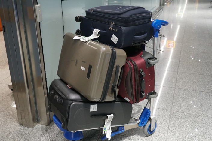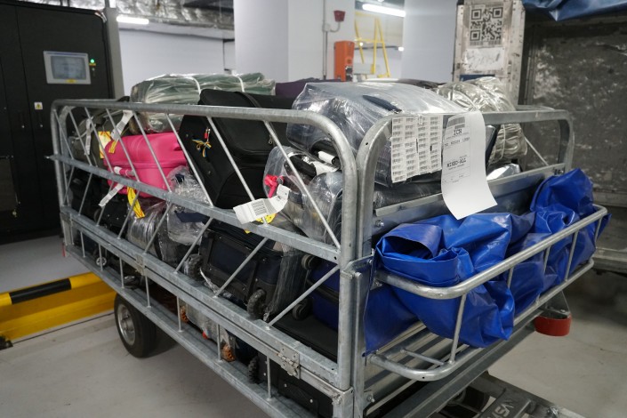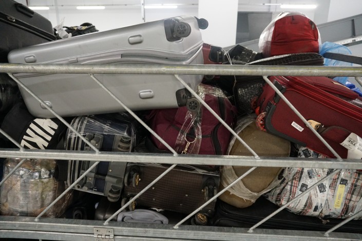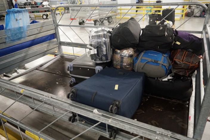 Эти чемоданы по какой-то причине не прибыли в Астану из Москвы вместе с пассажиром. Авиакомпания будет разбираться, почему так произошло. Сотрудники аэропорта поместят багаж в камеру хранения, пока за ним не приедут его владельцы.