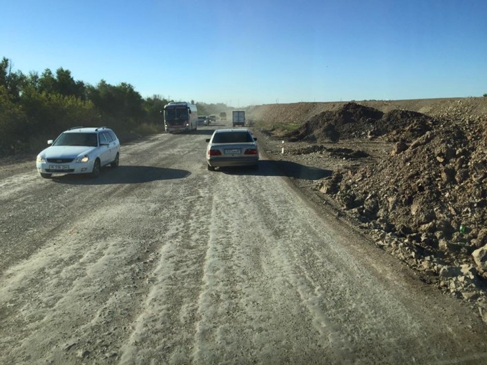 "Продолжили автопутешествие. Вчера выехали в Караганду, затем на Балхаш. Дети в дороге сразу уснули. Несмотря на то, что выехали рано утром, в 6.00, трасса была сильно загружена. Очень много местных лихачей, выезжающих на "встречку". На пути довольно часто попадался продавленный тяжелым транспортом, еще довольно новый асфальт. Это возможно по двум причинам: либо некачественное дорожное покрытие, либо проморгала транспортная инспекция, выпустив на трассу китайские 40-тонники, с нагрузкой на ось свыше 25 тонн. Насколько я знаю, они предназначены для работы в карьерах. И перевозя грузы на трассах, которые их не выдерживают, мы сами же плюем в свою тарелку. Одной рукой делаем, другой тут же разрушаем", - делится своими мыслями Бегентаев и подкрепляет все эти рассуждения фото.