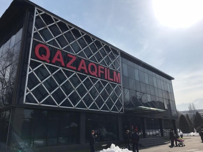 Киностудия "Казахфильм" имени Шакена Айманова. Вывеска на латинице появилась здесь в феврале 2019 года. Как сообщили в пресс-службе организации, это было сделано по поручению руководства. В киностудии отметили важность перехода казахского алфавита на латинскую графику.