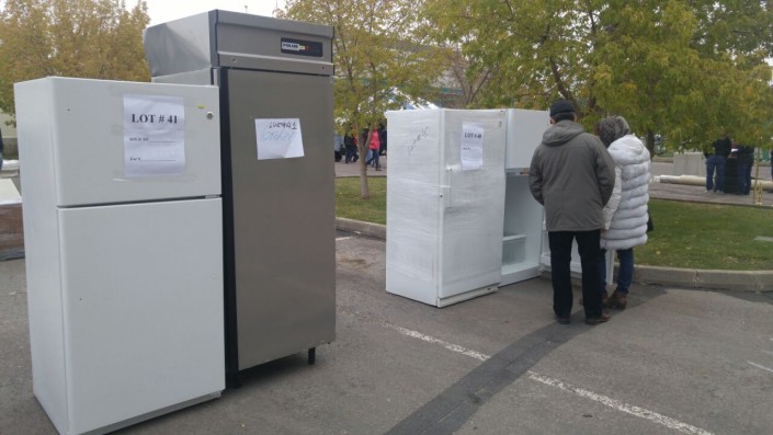 Лот № 41 холодильник и морозильная камера. Цена за каждую вещь 50 долларов. В прайс-листе указывается, что технике необходим ремонт.