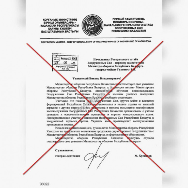В мессенджерах и социальных сетях распространяется фото документа, в котором говорится, что Казахстан и Беларусь прекращают двустороннее сотрудничество в сфере военного образования. По данным портала Stopfake.kz, информация не соответствует действительности, передает Tengrinews.kz.