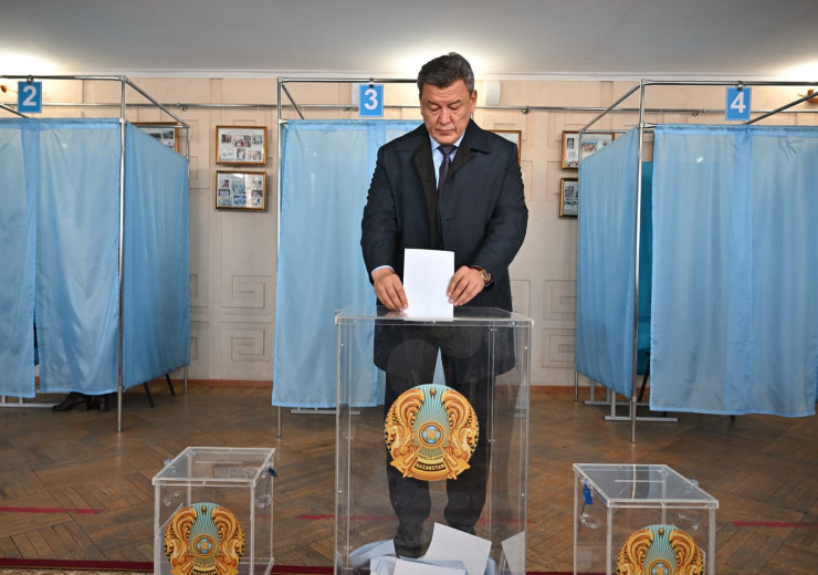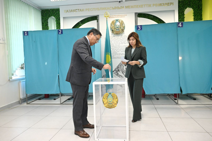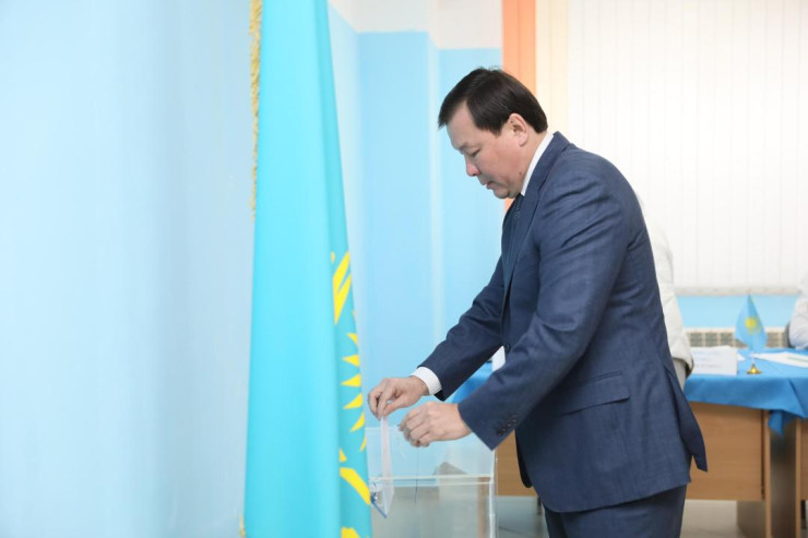 Премьер-министр Олжас Бектенов проголосовал на участке во Дворце школьников.