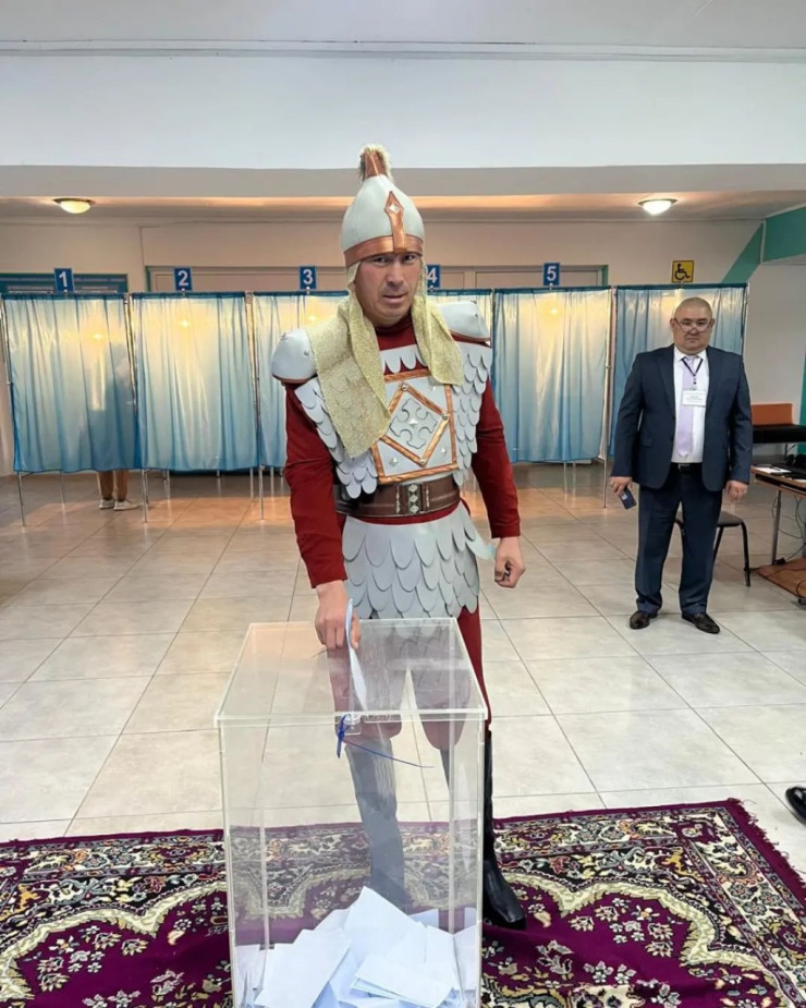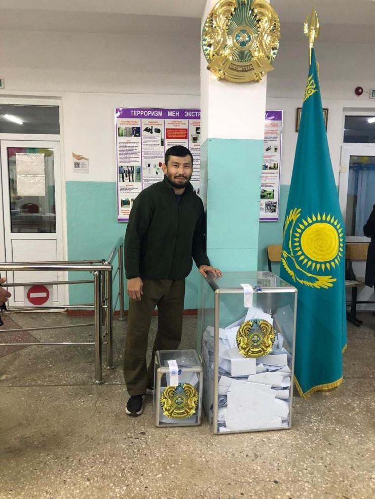 Голосование еще не окончено! Казахстанский борец греко-римского стиля, серебряный призер Олимпийских игр 2024 года в Париже Демеу Жадраев пришел на свой участок и проголосовал в референдуме.