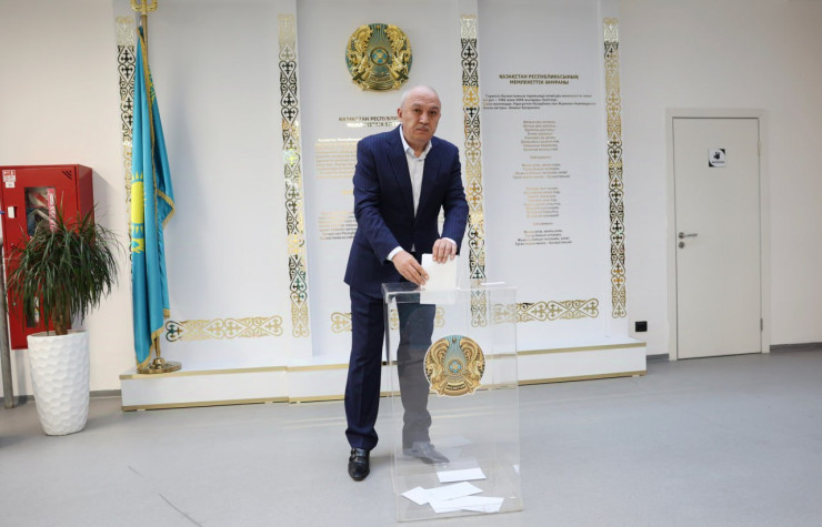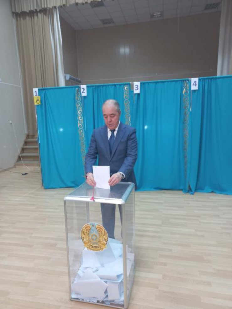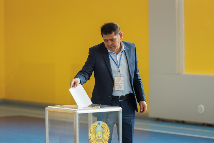 Министр энергетики Алмасадам Саткалиев проголосовал на участке по шоссе Коргалжын в Астане.
