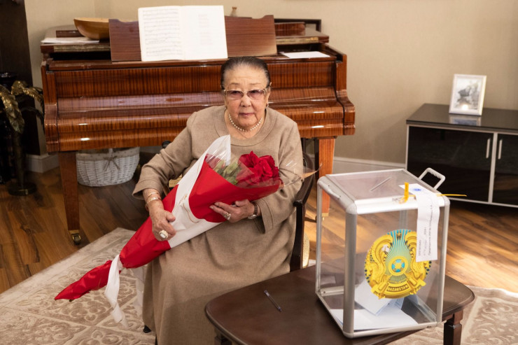 К народной любимице Бибигуль Тулегеновой урна для голосования приехала домой. Напомним, эта возможность открыта для всех, кому сложно дойти до участка самостоятельно.