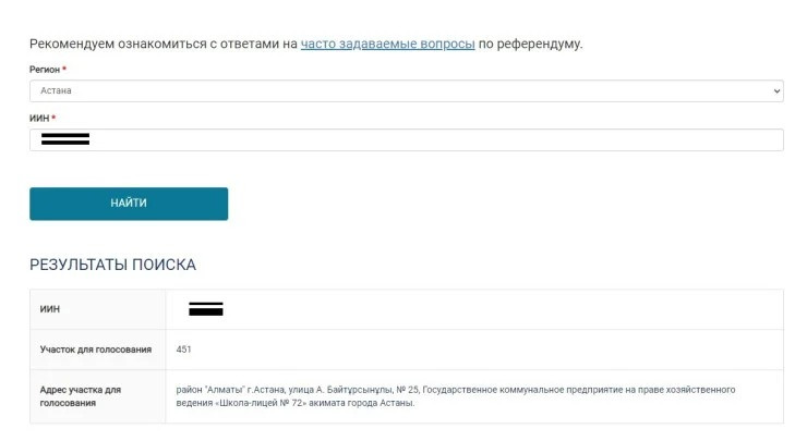 Для тех, кто недавно проснулся и еще только планирует идти на референдум, напомним, как найти свой участок для голосования. В Казахстане работает специальный сайт — referendum.gov.kz. Чтобы узнать свой участок: