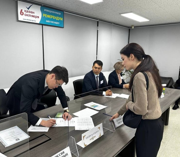 Как сообщил замминистра иностранных дел Роман Василенко, по состоянию на 19:00 за рубежом завершило работу 13 участковых комиссий референдума и проголосовало более 7358 граждан Казахстана. Явка составила 59,79 процента.
