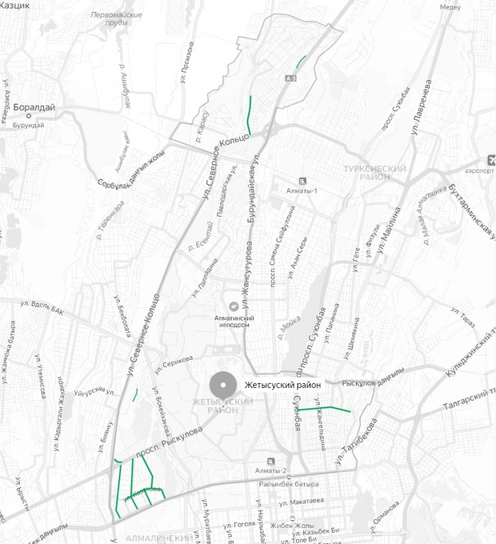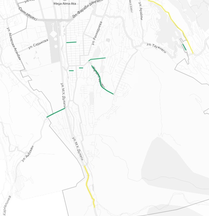 В Медеуском районе отказались от ремонта на двух улицах: Турксибской от улицы Оспанова до дома № 52 и Олимпийской от улицы Олимпийской до Тышканбаева. Дороги в микрорайон Горный гигант все еще перекрыты.