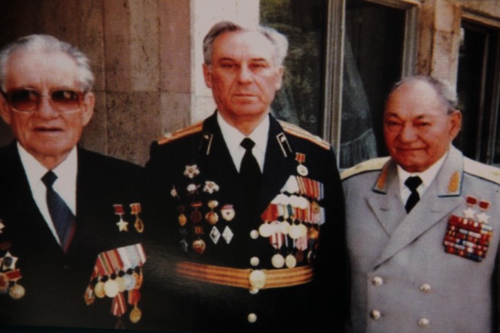 Празднование 50-летия Победы. Ветераны ВОВ Юрий Павлов, Леонид Гирш и Талгат Бегельдинов, 9 мая 1995 год