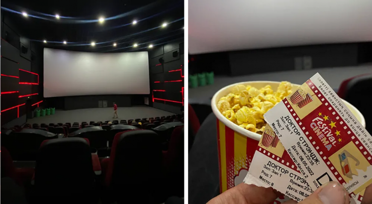 Сеанс фильма стоил обоим 2200 тенге, или 327 рублей, удалось даже получить студенческую скидку. Попкорн вышел в 1900 тенге, или 282 рубля.