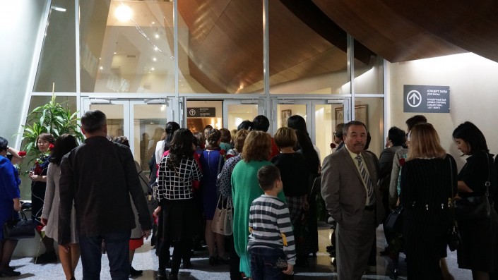 Столичные учителя начали подходить к Центральному концертному залу "Казахстан" задолго до начала мероприятия. Шли они на праздник группами, весело переговариваясь в предвкушении поздравлений от начальства и коллег.