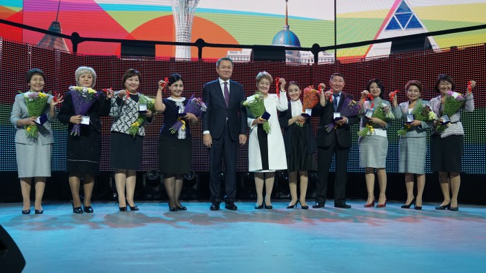 "Для нашего Президента город Астана, как вы знаете, - его любимое детище. Поэтому на ваших плечах большая работа", - сказала она, поздравляя учителей, после чего чиновница наградила некоторых учителей нагрудными знаками.