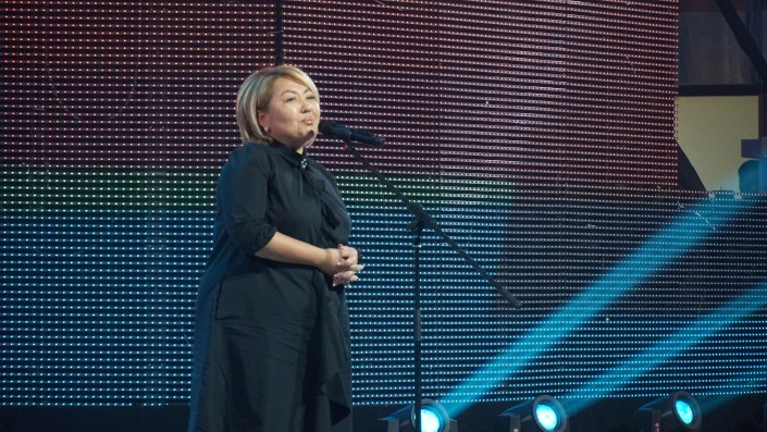 После нескольких номеров к гостям праздника вышла вице-министр образования и науки Эльмира Суханбердиева.