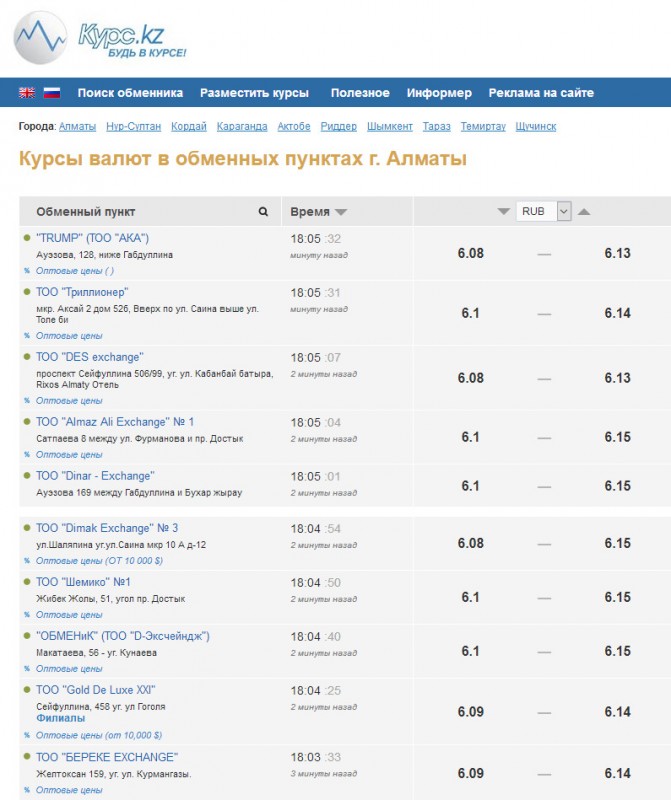 Российский рубль продают в казахстанских обменниках за рекордную цену - 6,15 тенге, передает корреспондент Tengrinews.kz.