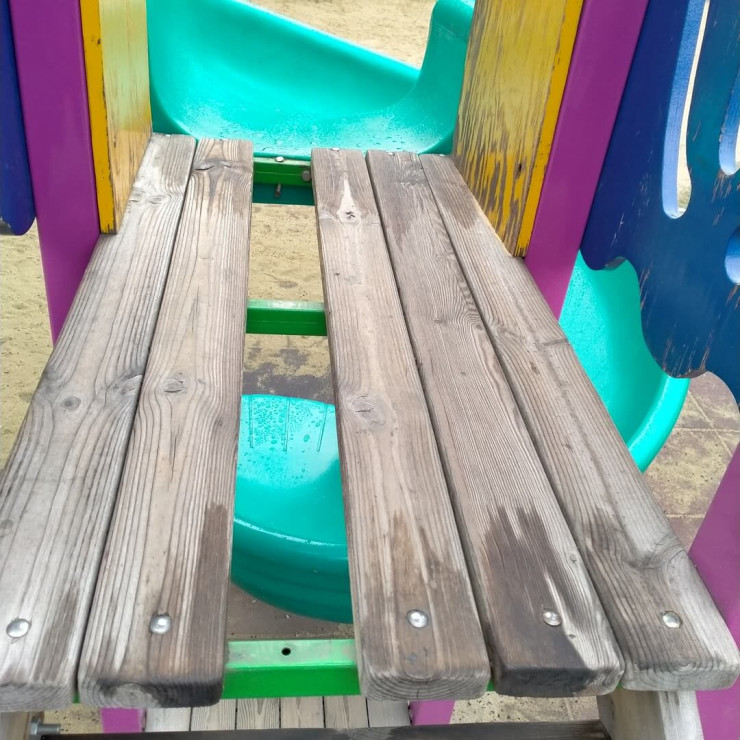 Мама пострадавшей девочки также показала, в каком состоянии находится детская площадка. Рядом с демонтированными качелями домик без крыши, тренажер без детали, а на карусели треснуло пластмассовое кресло.
