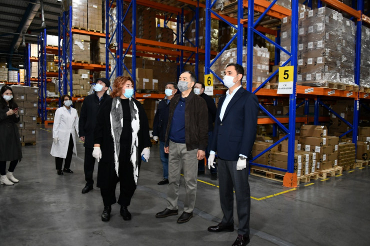 Бакытжан Сагинтаев ознакомился с алгоритмом хранения и распределения вакцин, проверил созданные условия по обеспечению их правильного хранения. Посетил зону приема товаров и осмотрел холодильные камеры.