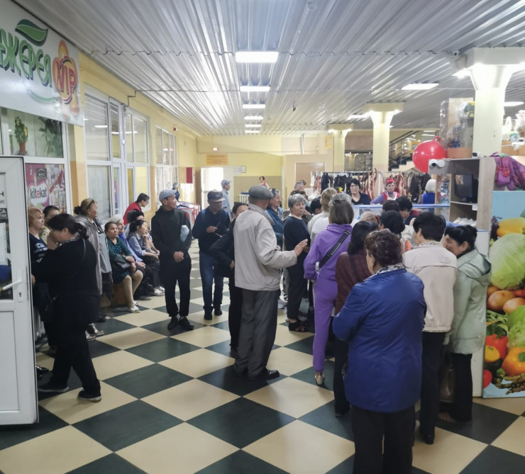 Очередь в точке реализации продукции стабилизационного фонда на рынке в Петропавловске. Фото ©Tengrinews.kz